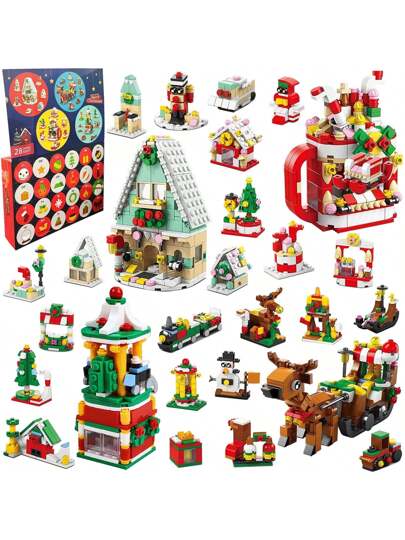 Advent Calendar,Block Advent Calendar,Toy Advent Calendar,Advent 24 Building Blocks,Christmas Gift (8886 Christmas Sleigh) - Red - View 6