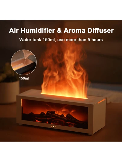 Air Humidifier Flame Fireplace Aromatherapy Machine Desktop Air Diffuser Essential Oil With Timed Colorful Light Remote Control - White - View 1