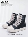 Alan Vincent Black Boots 2025 New Style Women Boots High-Top Women Lace-Up Zip Flat Boots Party Shoes For Women Daily Wear Ladies Shoes Casual And Versatile Fashion Sneakers Cute Boots