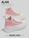 Alan Vincent[Canvas Shoes Series]Thick-Soled Canvas Shoes 2025 New Women High Top Canvas Shoes With Silver Chain Platform Shoes Height Increasing Sport Shoes Ladies Sneakers Black Shoes For Women Fashionable Casual Canvas Women's Shoes