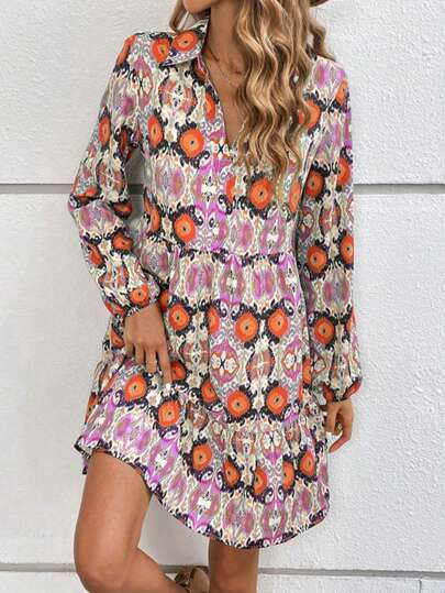 SHEIN Clasi Allover Print Ruffle Hem Smock Dress - Purple - View 1