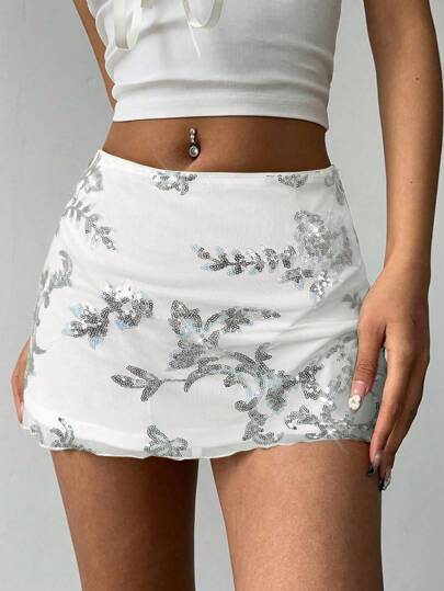 Aloruh Sequin Patchwork Fitted Mini Skirt With Embroidery, Elegant Summer - White - View 1