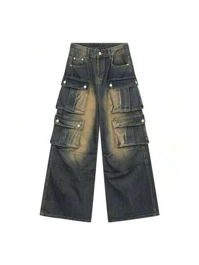 American Retro Loose Fit Straight Leg Multi-Pocket Cargo Pants For Men - Dark Wash - View 1