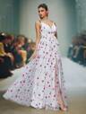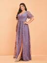 Plus Size Floral Embroidered Lace Puff Sleeve Open Shoulder High-Low Formal Dress, Elegant Long Sleeve Bridesmaid Dress