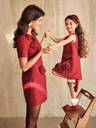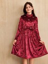 Anewsta Women's Elegant Cinched Waist Flocked Floral Print Stand Collar Dress, Suitable For Fall, Winter, Spring, New Year, Party, Wedding, Elegant, Chic, Stylish, Business Casual, Cozy, Thanksgiving, Work, Going Out