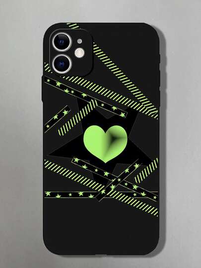 Anti-fall Heart Print Phone Case - Green - View 1