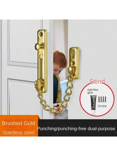 Anti-theft Door Chain Lock For Home, Hotel, With Inward Swinging Door Security Latch, No Drill Window Chain Lock - Gold - View 1