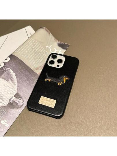Apple 15 Pro Max Phone Case, Embroidered Leather Apple 15 Plus Cartoon Puppy Design Phone Case, Creative 14 Pro Max, Apple 13 Shockproof Animal Pattern Phone Case, Apple 12 Pro Max, Apple 11 Protective Cover, High-End Leather Texture 14 Plus Protective Case - Black - View 1