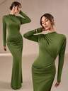 Women's Elegant Green High-Neck Bodycon Maxi Dress – Layered Shawl Sleeves, Ideal For Social Gatherings, Festive Occasions, Parties, Weddings & Tea Parties