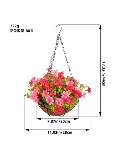 Artificial Flower Hanging Basket - Pink Flower Hanging Basket - View 5