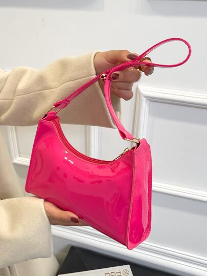 Artificial Patent Leather Bag - Hot Pink - View 1