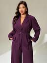 Auralis Plus Size Women's Solid Color Shawl Collar Long Sleeve Faux Fur Patchwork Woolen Coat, Autumn/Winter Office Old Money