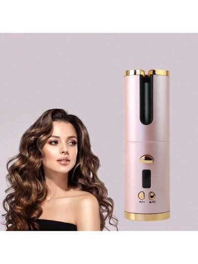 Automatic Curling Iron, Cordless Auto Hair Curler, Ceramic Rotating Hair Curler With 6 Temps & Timers, Portable Rechargeable Curling Wand, Auto Shut-Off, Fast Heating Iron For Styling - Pink - View 1