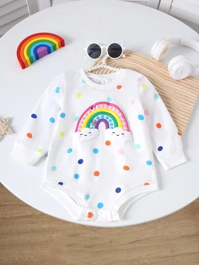 Autumn/Winter Cute Baby Girls' Rainbow Polka Dot Bodysuit - Multicolor - View 1