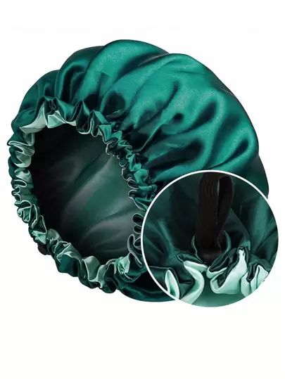 Awegeo 1pc Women's Solid Color Double-Layer Satin Sleep Cap, Adjustable Drawstring & Button, Fashionable Sleep Hat For Daily Wear, Protects And Styles Hair Hair Sleep Cap - Cadet Blue - View 1