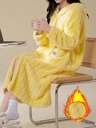 Cute Striped Fluffy Pajamas - Bear Pattern Comfortable Wool Flannel Thickened Warm Fluffy Pajama Set - Women's Polyester Sleepwear Top And Pants, Suitable For New Year - Long Sleeve Round Neck Top & Pants Homewear 2-Piece Set, Fall Winter Clothes, Cozy