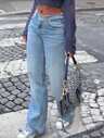 Ripped Wide Leg Jeans,Ladies Button,Pocket,Ripped,Zipper Natural Wide Leg Extra Long Black Boyfriend Fit Loose Women Jeans,Spring/Fall,Casual Daily Wear