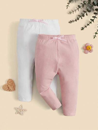 SHEIN Baby 2pcs Bow Front Trousers - Multicolor - View 1