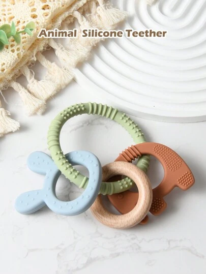 Baby Elephant & Rabbit 4pcs Set Teething Toys Suitable For 3-Month-Old Infants' Teething And Hand-Mouth Coordination - Green - View 1