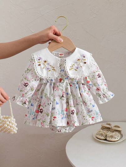 Baby Girl Fashionable & Cute Floral Embroidered Romper - Multicolor - View 5