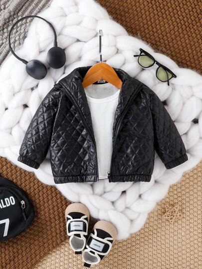 Baby Girl Zip Up Quilted Jacket - Black - View 1