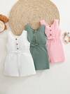 SHEIN 3pcs/Set Cute Casual Knitted Polka Dot Solid Color Sleeveless Romper For Baby Girl