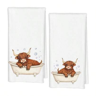 Bathtub Bubble Funny Cow Design Kitchen Towel Gift, Super Absorbent, Cartoon Design, Machine Washable Reusable Towel, Suitable For Home, Kitchen, Bathroom, Car, Window Cleaning - Soft Knitted Dish Towel - Multicolor - View 1