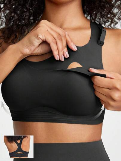 GLOWMODE Be Lifted Racerback Nursing Bra Anti-Spill Medium Impact Daily - Black - View 1