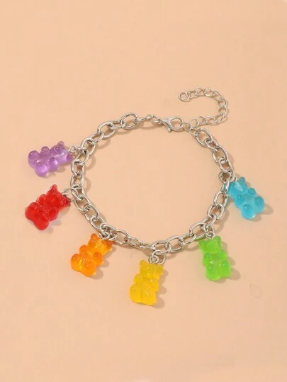 1pc Fashion Colorful Dopamine Bear Charm Bracelet, Random Color - Silver - View 4