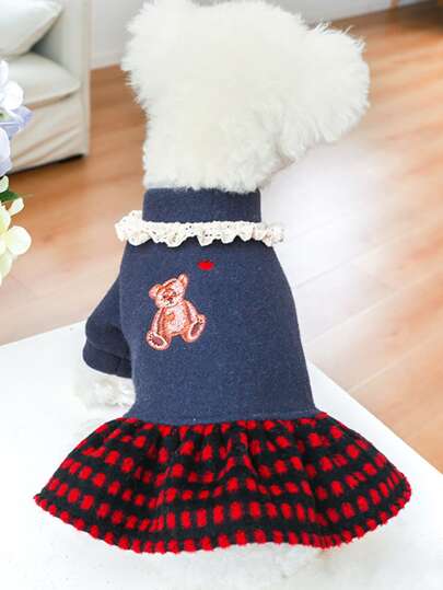 Bear Print Pet Warm Dress - Multicolor - View 1