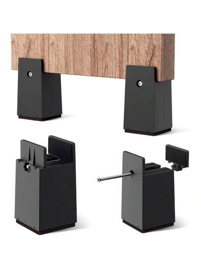 Bed Risers, 4 Inch Adjustable Desk Riser Blocks With Screw Clamp 4 Pack Heavy Duty Chair Raisers Fits 0 - 2 Widths Of Furniture Risers Chair Leg Extenders Sofa Table, Supports 20, 000 Lbs, Black - Black - View 1