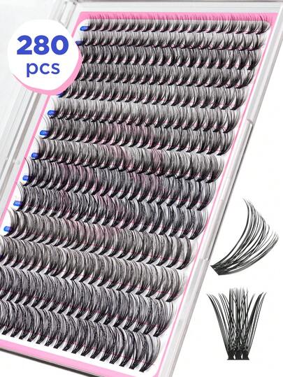 Bepholan DIY Eyelash Extension Kit, Includes 280 Individual Lashes, D Curl Cluster Lashes For Beginners, Black Band (40D) - Pink - View 1