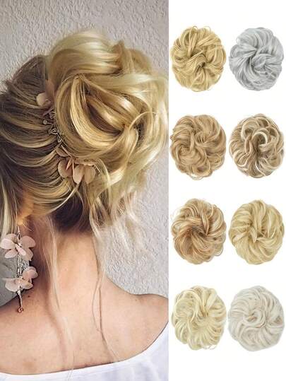 Clip Messy Bun Hair Piece Clip Hair Bun Wavy Curly Scrunchies Synthetic Chignon Ponytail Hair Extensions Thick Updo Hairpieces For Women - Multicolor - View 13
