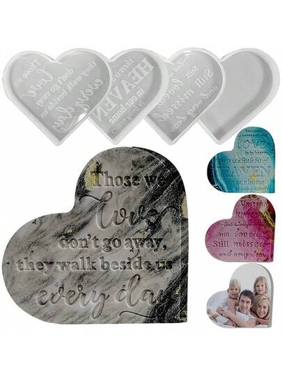 4pcs Heart Shape Resin Molds, Silicone Casting Molds For Resin Heart Memorial Mold, DIY Crystal Heart Sympathy Gifts And Home Decor - White - View 11