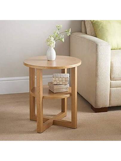 Biznest Round & Oval Side Table Lamp Coffee Table Hallway Living Room Furniture 2 Tier Home Decor End Table (Oak, Round) - Natural Oak - View 1