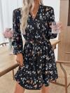 Travachic Boho Mini A Line Dress For Women V Neck Short Puff Sleeve Black Random Floral Print Woven Fabric, Short Floral Dress, Luxury Evening Dresses For Weddings,Halloween Costume, Christmas Party Clothes, New Year Look, Thanksgiving Outfits, Elegant Dresses Party