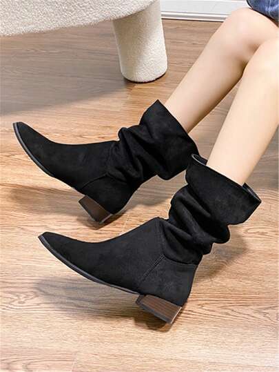Black Fashionable Suede Knee-high Boots - Black - View 1