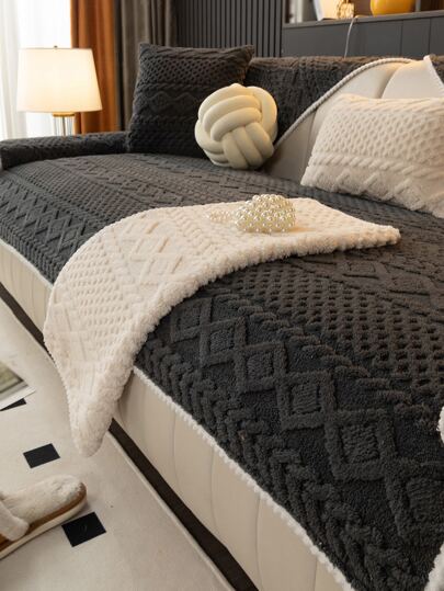 Black & Gray Geometric Plush Sofa Cushion - Black - View 1