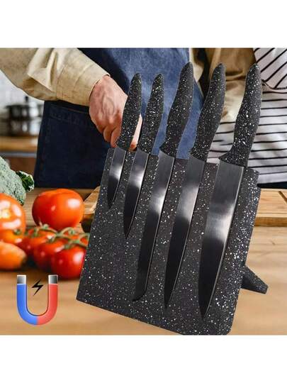 Black Magnetic Knife Holder Knife Block Rack Kitchen Organisation Cutlery Set Storage Space-Saving Magnetic Knife Rack - Black - View 1