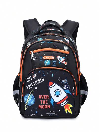 CUSANGEL Black Rocket Design Primary School Student's Backpack, Large Capacity Space Bag - Black - View 1
