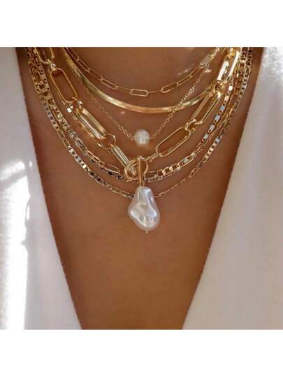 Bohemia Gold Color Multiple Styles Necklace For Women Multi-Layer Crystal Pendant Necklaces Set Jewelry Gifts - NO3 - View 1