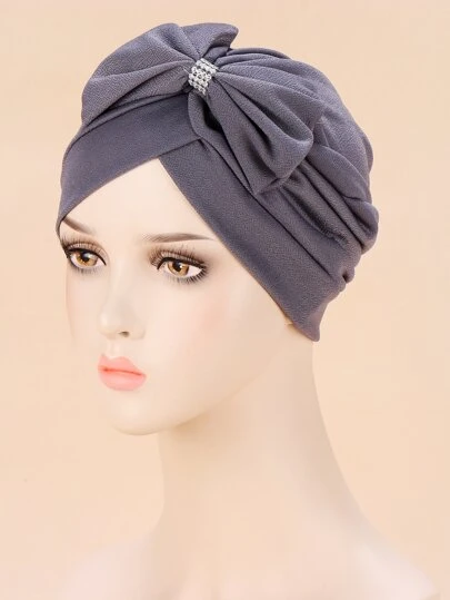 Bow Decor Turban Hat - Grey - View 1