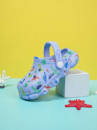 Boys Dinosaur Print Breathable Non-Slip Two Way Wear Clogs For Summer - Dusty Blue - View 1