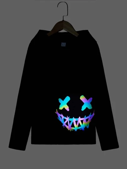 SHEIN Boys Reflective Cartoon Graphic Hooded Tee - Black - View 1