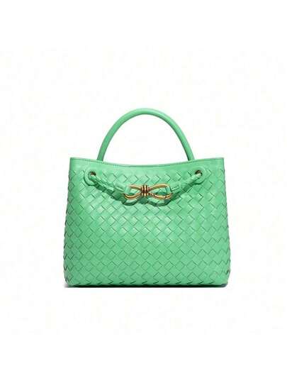 Braided Handbag 2025 New Metal Rope Buckle Niche Design Simple Shoulder Bag Large Capacity Crossbody Bag - B1747# Siren Green - View 1