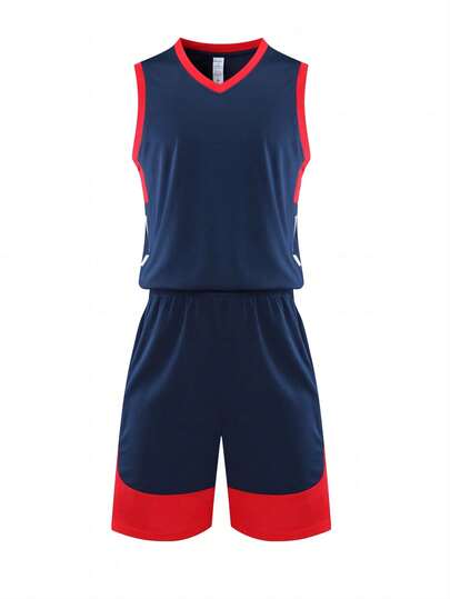 Breathable Basketball Jersey Set For Men's Team Uniforms, Sports Competition Outfit - Royal Blue - View 1