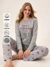 Women's Casual Heart Print Crew Neck Long Sleeve Top And Pants Pajama Set, Fall & Winter Clothes