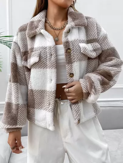 SHEIN EZwear Buffalo Plaid Print Drop Shoulder Flannel Jacket - Multicolor - View 1