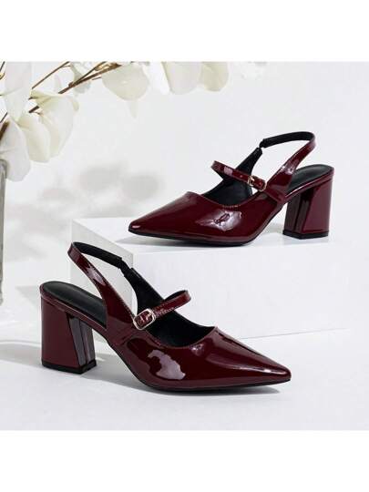 Burgundy Backless High Heel Pointed Toe Sandals, New Breathable Chunky Heels For Dress, Plus Size - Burgundy - View 1