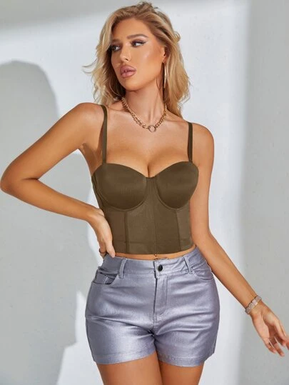 Bustier Mesh Cami Corset Top - Mocha Brown - View 4